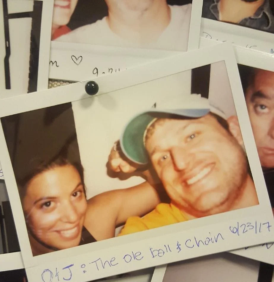 An instant camera (remember the days of Polaroid pictures?) in on the table. Watch your new memories develop. In lieu of a guestbook, pin your pic or mug shot to the wall board, signed with your real or alleged name & date.